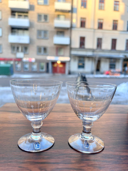 Johansfors, starkvinsglas - Etsad dekor av streck och cirklar